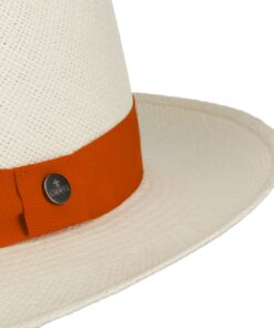 The monochrome hat is the ideal companion for sunny days. Thanks to its 100% finely woven Panama straw material, it is lightweight and breathable. It also provides effective protection from the sun with an integrated UV protection factor of 50 and a brim width of 6.5 cm. The classic grosgrain ribbon trim in a contrasting colour with brand pin is a real eye-catcher.