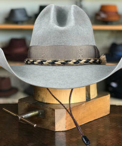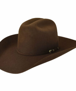 The Deadwood, a premium wool cowboy hat boasting a classic cattleman’s silhouette with a taller, 4 5/8″ crown and curved 4″ brim. This high-quality hat is adorned with refined accents like a 3-piece silver buckle on the matching hatband. Stay cool and comfortable with the leather interior sweatband. Elevate your Western style with the Deadwood cowboy hat, where quality meets elegance.