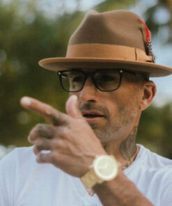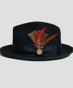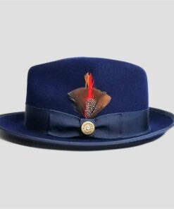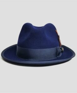 The Bikary Fedora is constructed of firm finish, fur felt and features a pinchfront crown, bound edge brim, interior cotton sweatband and grosgrain hat band with feather accent.