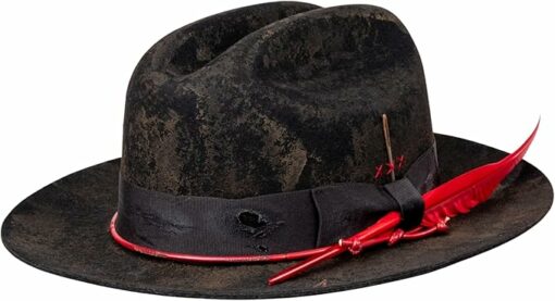 - Handmade: This teardrop Fedora felt hat is a natural material made of wool that has been compressed and tangled into felt. It is of high quality, comfortable and breathable. Because it is a fire-baked old craft, the texture is hard. The interior is made of high-quality artificial leather sports straps with engraved brand RUEDIGER stamp. The lining of the hat is made of silk fabric, which is soft and skin-friendly, adding a sense of fashion and luxury.
