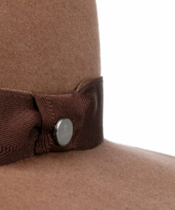 With a contrasting hat band and a jaunty button.
